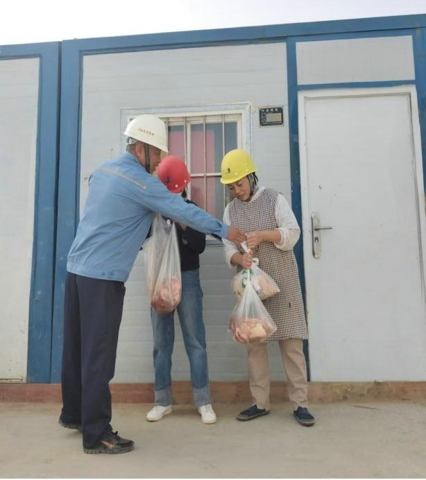 項目管理人員精心挑選了一批食材,親手送到了班組員工的生活現(xiàn)場,一份份新鮮的食材不僅承載著濃濃的節(jié)日祝福,更表達了項目部對施工人員辛勤勞動的深深謝意。在送食材的過程中,項目管理人員與班組員工面對面進行深入的交流,傾聽他們的聲音,分享他們的故事,讓這份關懷更加貼心和真摯。