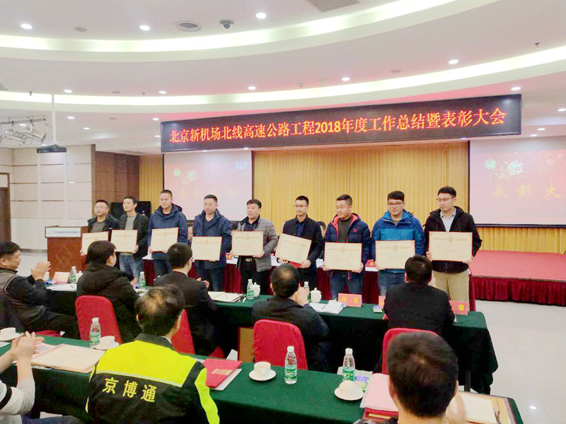 2019年1月21日,興延公司召開“興延高速公路建設項目暨2018年度總結(jié)表彰座談會”,北京興延高速一標項目經(jīng)理部獲得“優(yōu)秀項目經(jīng)理部、征地拆遷先進單位、綠色工地稱號”,項目經(jīng)理董鑫獲得“優(yōu)秀項目經(jīng)理”,項目4人次榮獲“安全質(zhì)量管理先進個人、項目管理先進個人、征地拆遷先進個人”榮譽稱號,共計獲得獎金22.8萬元。