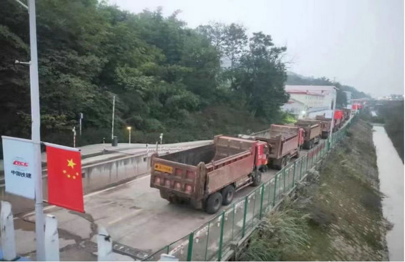 中梁山隧道進(jìn)口便道運(yùn)輸棄渣的車隊(杜曉言攝)