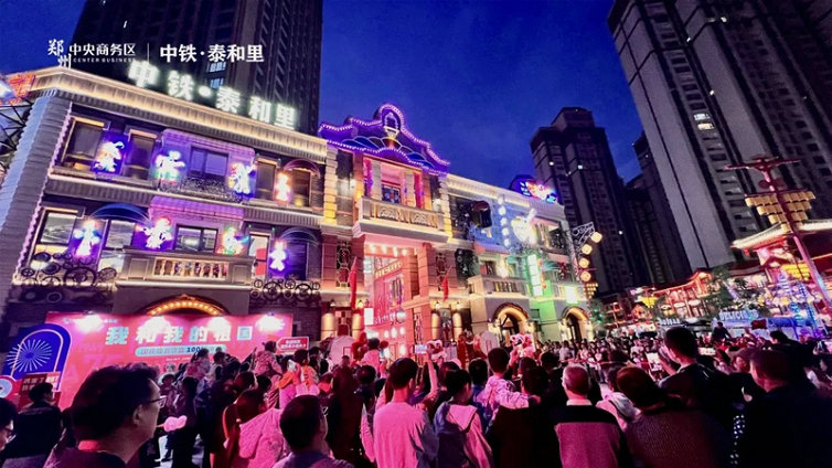 街區(qū)現(xiàn)場市民接踵而至,數(shù)千面五星紅旗隨風(fēng)飄揚(yáng),呈現(xiàn)出一片欣欣向榮、國泰民安的盛世景象。印象1923和唐宋夢華街區(qū)同時(shí)開演大型沉浸式演藝,包含《人生如戲》、《泰和里盛會》、《花月宴》、《民間儺戲》、《花魁巡游快閃》等經(jīng)典大劇以及國慶快閃、紅歌大合唱、國潮變臉、國潮戲曲、詩詞串燒等國慶限定版節(jié)目,成功吸引了廣大市民的目光。街區(qū)內(nèi)紅歌大合唱將現(xiàn)場氛圍推向了高潮,游客們齊聲高唱,用嘹亮的歌聲共同表達(dá)對祖國的深切熱愛與美好祝愿。中鐵·泰和里主題街區(qū)通過深度挖掘中原歷史文化,以其獨(dú)特的沉浸式體驗(yàn),在文商旅項(xiàng)目中脫穎而出。不僅為鄭州的夜經(jīng)濟(jì)增添了新活力,還成為了展示城市文化、提升消費(fèi)體驗(yàn)的重要窗口。未來,中鐵·泰和里將繼續(xù)為鄭州市國際消費(fèi)中心的建設(shè)貢獻(xiàn)力量,為更多游客帶來與眾不同的文化體驗(yàn)。