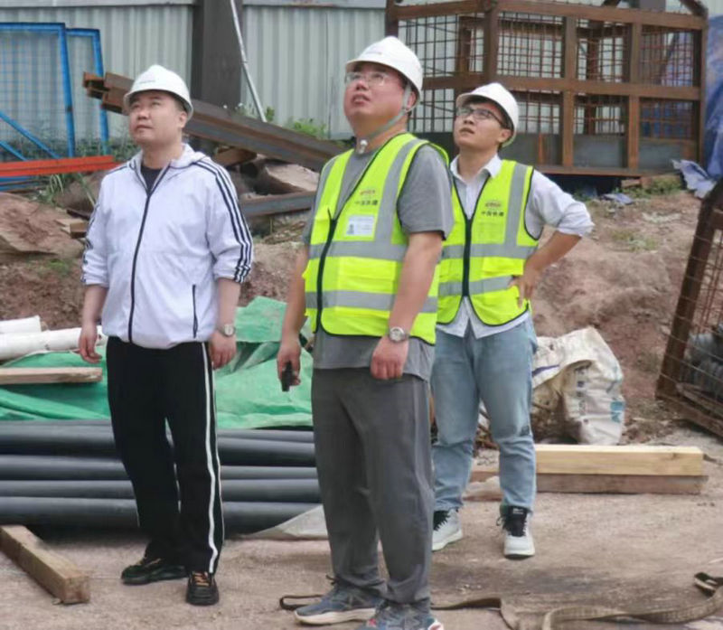 總承包部指揮長(zhǎng)李兵(左1)、黨工委書記王向平(右1)在現(xiàn)場(chǎng)巡查督導(dǎo)工作