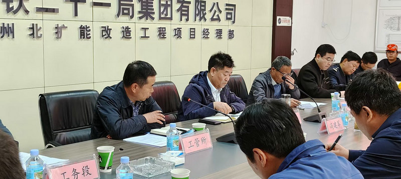 唐文國深入一線,實地檢查了項目上下編組場及下行駝峰風雨棚現(xiàn)場施工情況。隨后,在項目組織召開了現(xiàn)場推進會。