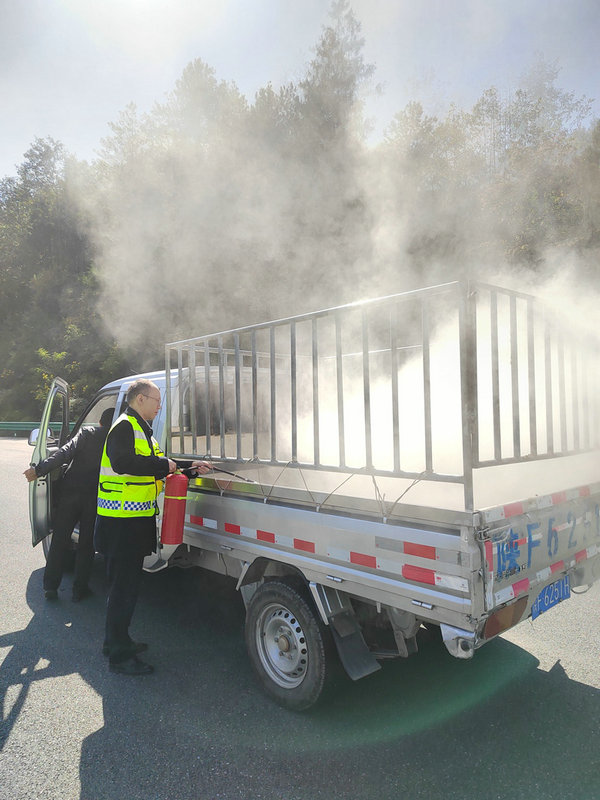 當日13時53分,一輛平板式貨車行駛至廣平高速樂安收費站出口,收費員吳金鳳發(fā)現(xiàn)車箱有濃煙冒出,立即告知司機火情,引導著火車輛駛入緊急避險位置,并及時報告監(jiān)控中心和值班站管;另一方向的入口收費員王陽澤曦看到后,立即攜帶手持式滅火器跑到著火車輛處第一時間進行撲救;聽到火情通報后,收費站其余人員按照預案趕赴現(xiàn)場參加處置。經(jīng)過約十分鐘全力撲救,火情被徹底撲滅,無人員受傷,車上貨物大部得到挽回。