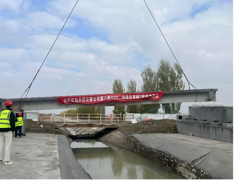 石河子訊(通訊員 李宇通)10月20日,在北新路橋集團(tuán)兵團(tuán)交建公司第八師 G335 二標(biāo)項(xiàng)目施工現(xiàn)場(chǎng),隨著最后一片T梁精準(zhǔn)落位,西古城橋架梁施工圓滿完成,現(xiàn)場(chǎng)響起一片歡呼與掌聲,這標(biāo)志著該項(xiàng)目建設(shè)取得了又一重大突破。
