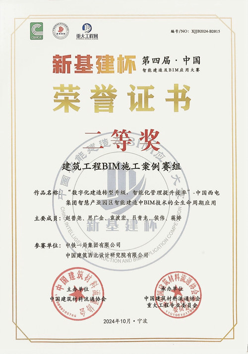 (西安訊)11月4日,中鐵一局建安公司西電智慧產(chǎn)業(yè)園(東區(qū))五標(biāo)段項目“數(shù)字化建造轉(zhuǎn)型升級 智能化管理提升效率”BIM技術(shù)應(yīng)用成果捷報頻傳,先后斬獲國內(nèi)四項大獎,其中包括三項國家級獎項新基建杯二等獎、中施企協(xié)三等獎、龍圖杯優(yōu)秀獎以及一項省部級獎項秦漢杯二等獎。同時授權(quán)實用新型專利一項,申請實用新型專利一項、發(fā)表論文兩篇。