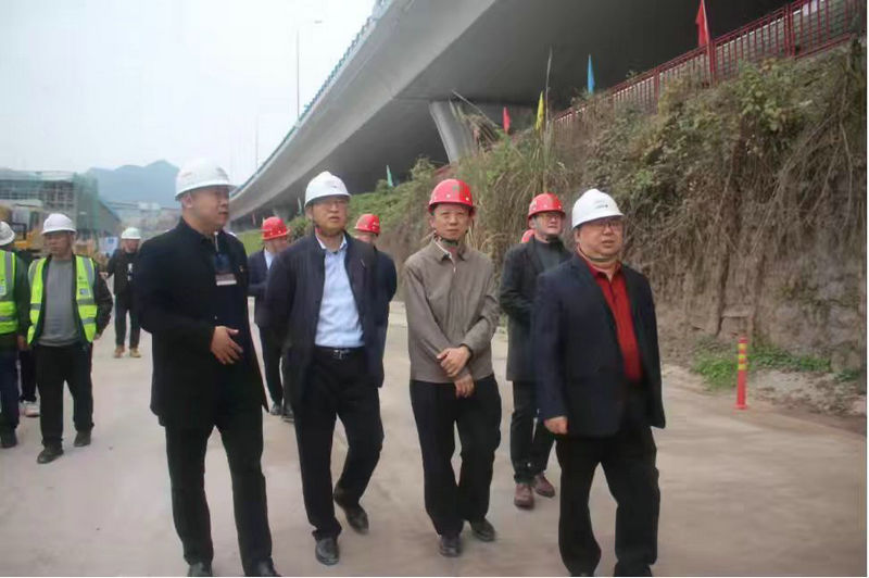 總承包部指揮長李兵(右1)、黨工委書記王向平(右3)、17標(biāo)項(xiàng)目經(jīng)理顧賀云(左1)到現(xiàn)場安全檢查