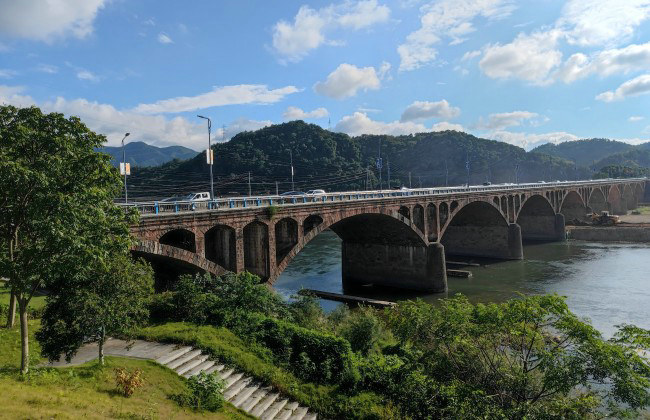 富足山大橋始建于1994年,設(shè)計(jì)高度19米、橋面寬18米,由9垮石拱組成,其中8孔位于錢塘江支流常山江主河道,與在建的天馬樞紐相鄰,全長300米。該橋是常山縣城區(qū)主干道,連接新老縣城、衢州及國道G320,是34萬居民與杭州及外省市往來的交通要道。隨著常山江航電樞紐項(xiàng)目的興建,富足山大橋下無法通過大噸位船只,阻礙航運(yùn)事業(yè)的發(fā)展,拆舊建新勢在必行。