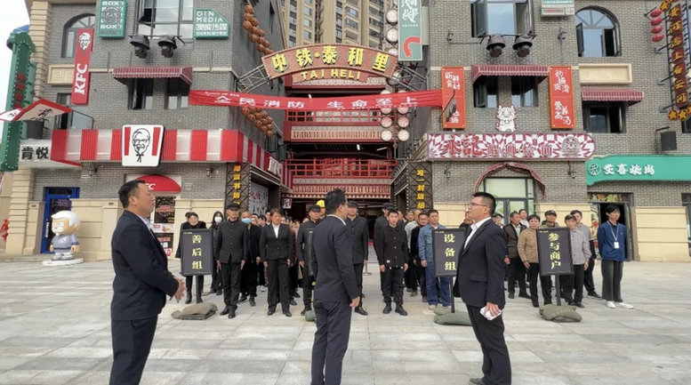11 月 7 日,中鐵中產(chǎn)置業(yè)公司中鐵·泰和里商業(yè)街聯(lián)合商戶開展消防安全演練活動(dòng)。