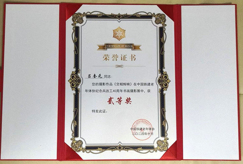 鐵路工程建設(shè)網(wǎng)訊(特約通訊員 王詩迪)近日,著名作家、詩人、新聞工作者、資深攝影人、原中鐵十五局集團(tuán)項(xiàng)目書記、現(xiàn)為企業(yè)文化顧問的呂奎元先生,在中國鐵建股份有限公司老年體協(xié)書畫攝影大賽中榮獲攝影類二等獎(jiǎng),展現(xiàn)了他卓越的才華和深厚的藝術(shù)功底,這是對(duì)他深入生活、扎根基層攝影藝術(shù)創(chuàng)作的充分肯定。