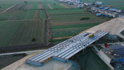 11月6日,宿固6標(biāo)項目施工現(xiàn)場人影交錯、機(jī)器轟鳴。隨著最后一片30米預(yù)制箱梁精準(zhǔn)定位后穩(wěn)穩(wěn)落在支座上,X312二號分離式立交橋梁板架設(shè)圓滿完成,標(biāo)志著宿固6標(biāo)項目30米預(yù)制箱梁架設(shè)全面拉開序幕。