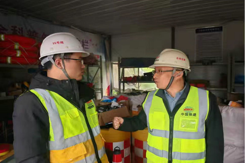 總承包部分管安全工作副指揮長(zhǎng)李燕斌(右)在中梁山隧道進(jìn)口檢查安全消防工作(高長(zhǎng)兵攝)