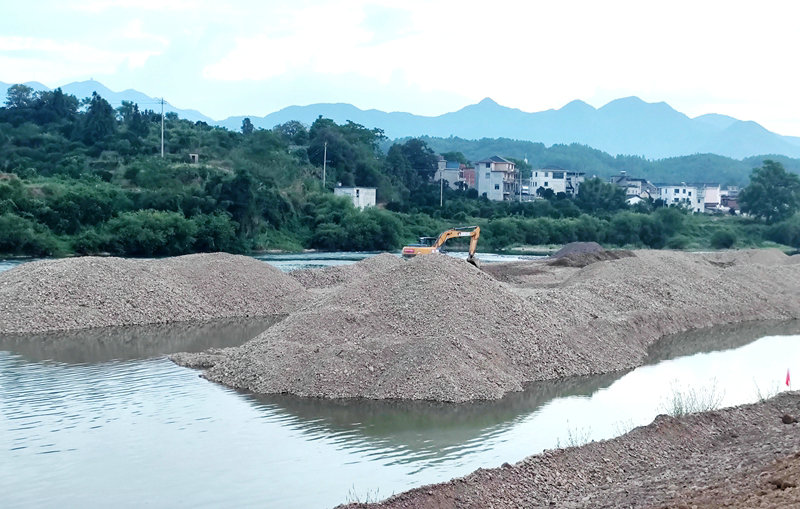 常山江航電4座樞紐均有圍堰,目的是抵御汛期常山江洪峰和上游多座水庫泄洪侵襲,確保導流墻、泄洪閘、發(fā)電站施工順利進行。今年7月中旬汛期過后,該項目部組織隊伍和設(shè)備進場施工,按照施工組織設(shè)計方案,利用就地挖出的泥沙將區(qū)域內(nèi)的常山江大部分隔開來,分層填筑、碾壓,從起初50厘米逐漸增高至3米、6.5米,從兩米長延伸至497.32米、底寬33.7米、頂寬5米的一座三面鄰水的高大圍堰。
