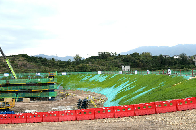 該樞紐開工后,導流墻、泄洪閘與圍堰同步作業(yè),迅速掀起大干高潮,晝夜突擊。為保證該樞紐施工達到環(huán)保要求,該項目對圍堰內(nèi)側(cè)一面全部掛網(wǎng)種草綠化,局部作噴護處理,刮大風不揚塵,江水未受到任何污染,保持綠色施工常態(tài)化。與此同時,將圍堰頂部兩側(cè)安裝鋼管、卡子、綠網(wǎng)構(gòu)成的安全防護欄,并在立柱上黏貼反光貼,夜間在上面運輸材料、轉(zhuǎn)運棄土棄渣的車輛和司機很安全。