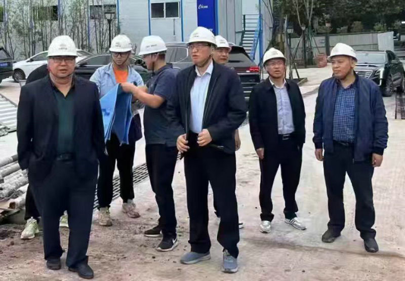 總承包部指揮長李兵(左1)、黨工委書記王向平(右3)經(jīng)常帶領(lǐng)黨員干部到現(xiàn)場巡查,及時發(fā)現(xiàn)解決問題
