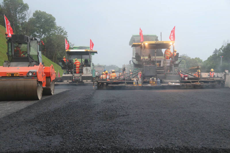 齊心協(xié)力共奮進,搶工大干正當時,該項目部“路面熱”成為一道靚麗的風(fēng)景線,揮汗如雨的建設(shè)者們,他們用汗水詮釋著“勞動最光榮”,依然堅守一線,確保攤鋪工作穩(wěn)步推進。并且對瀝青路面原材料、施工拌和、攤鋪、碾壓等各環(huán)節(jié)質(zhì)量控制要點及主要做法全面“充電”的同時,全員“搶晴天,干雨天”,加班加點推動路面結(jié)構(gòu)層施工,為導(dǎo)改提供有利條件。