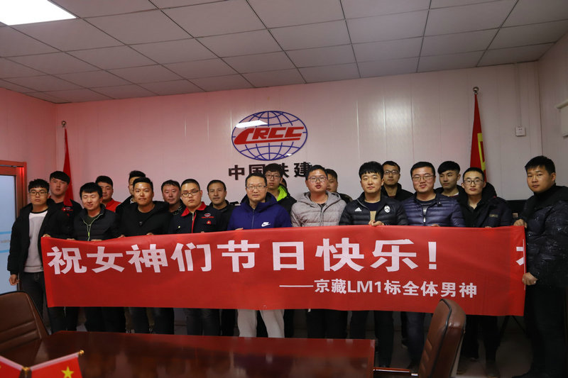JZLM1:京藏路面1標項目全體男職工為女神送祝福。