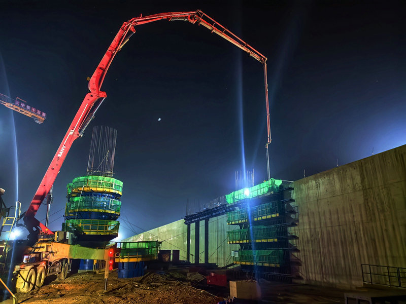 深夜灌注導(dǎo)流墻混凝土 鄭浩宇攝
