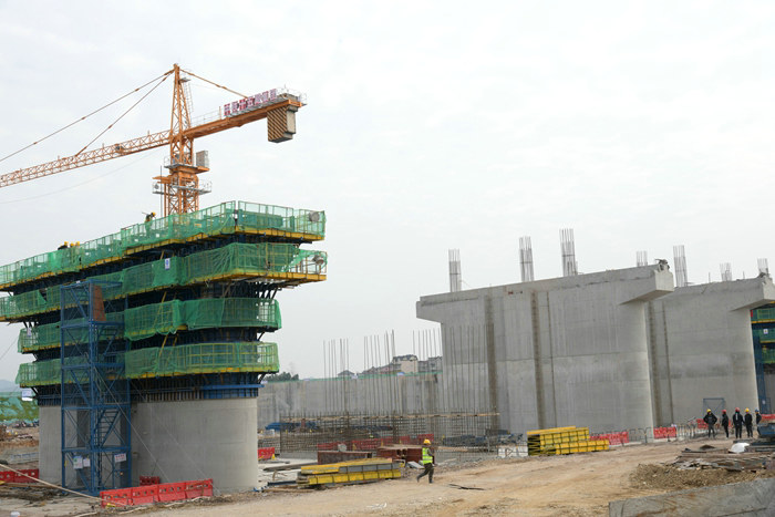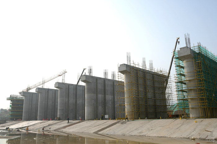 招賢樞紐建成的8個泄洪閘墩 王繼劍攝