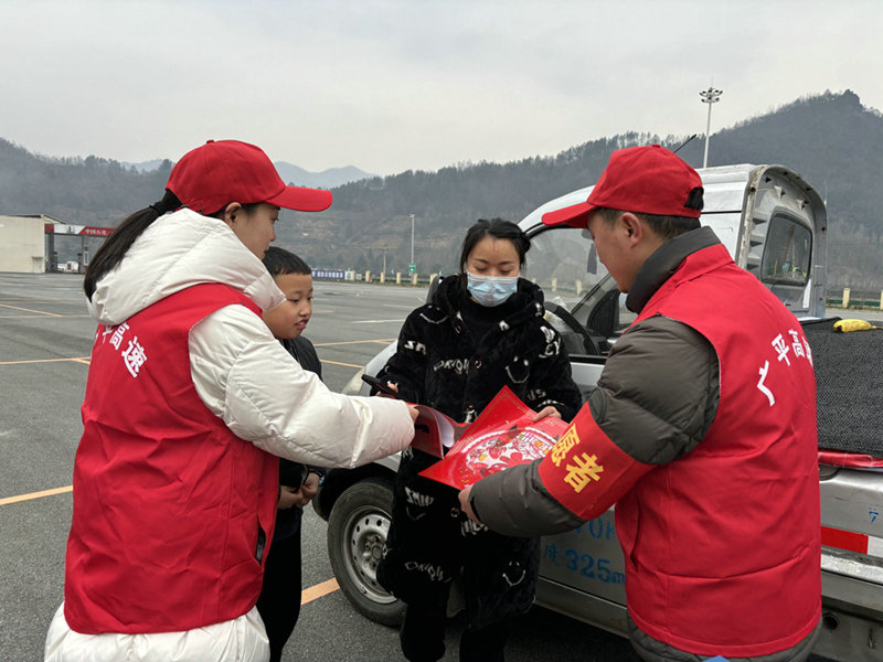 來到設(shè)置在服務(wù)區(qū)樓前的便民服務(wù)點,“暖冬行動、情滿旅途”橫幅高高懸掛,桌上擺放熱飲、小地產(chǎn)等和由春聯(lián)、窗花、福字等組成的新年大禮包,志愿者笑臉相迎、熱情服務(wù)。“天氣冷,請喝杯熱茶暖暖身子”,廣平高速運營中心的志愿者在遞上熱茶的同時也在傳遞社會的溫暖。“高速行駛要注意安全,祝您旅途順利”,來自高速公安的志愿者發(fā)出溫馨提示。“送您一份‘大禮包’,提前祝您和家人新年快樂”,高速執(zhí)法志愿者誠摯的祝福讓旅客消除了長途的疲憊。