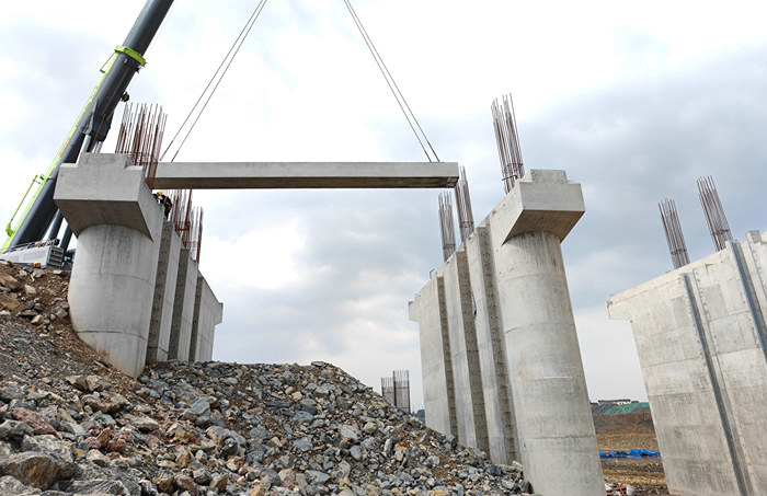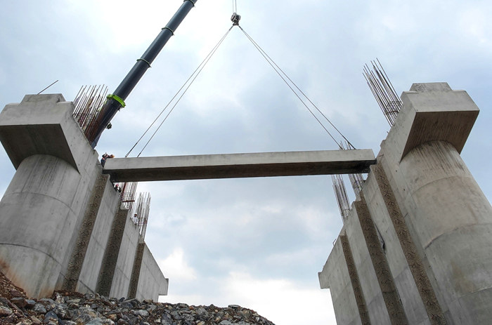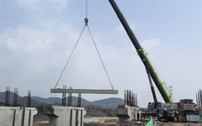鐵路工程建設(shè)網(wǎng)訊 3月16日上午10點(diǎn)55分,一臺(tái)60噸大吊車將一片23噸的空心板梁從大貨車上吊起,穩(wěn)穩(wěn)地安放在中鐵十五局常山江航電招賢樞紐泄洪閘4—5號(hào)閘墩上,隨之常山江項(xiàng)目拉開了架梁施工序幕。