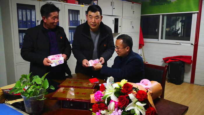 會后,項目部領導為退休職工發(fā)放慰問品,并合影留念。