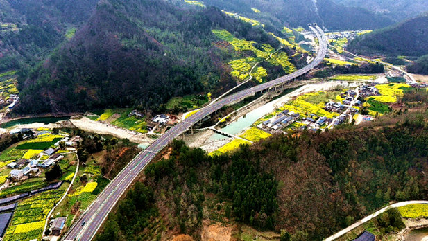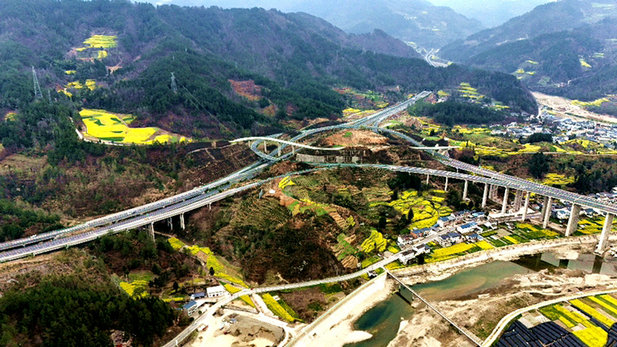 圖為廣平高速跨深谷、穿大山,在山區(qū)蜿蜒向前