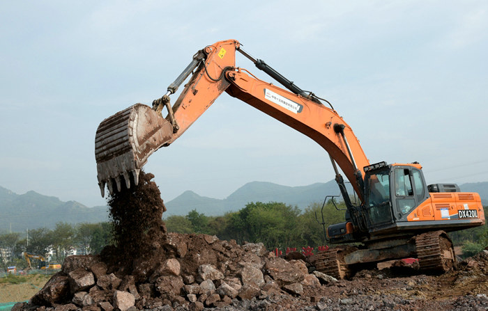 挖掘機(jī)儲(chǔ)備圍堰所需石塊 贠煥軍攝