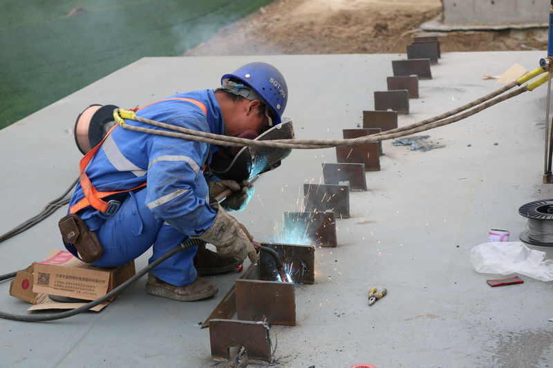 廣西北新建筑公司(長沙分公司)安徽宿固6標(biāo)項(xiàng)目現(xiàn)場工人正在進(jìn)行焊接作業(yè) 李丹攝