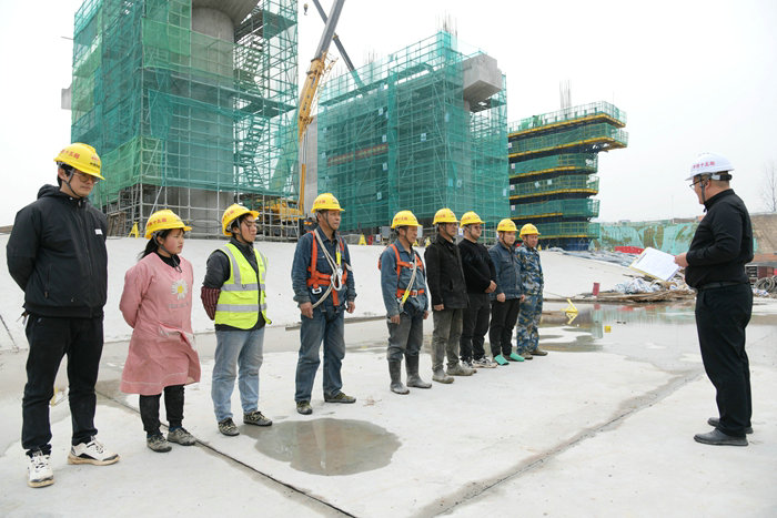 項目部副經(jīng)理、閣底工區(qū)負(fù)責(zé)人高夢琳給員工上安全課 李小亞攝