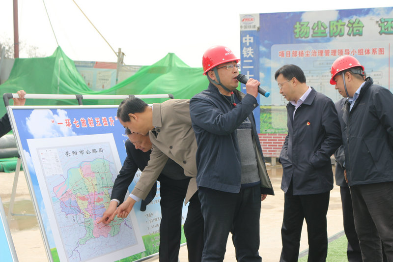 本網(wǎng)河南滎陽3月31日訊(通訊員 劉曉)3月29日上午,滎陽市市委書記宋書杰、人大主任張淑霞、政協(xié)副主席范勝利一行在市交通運輸局黨組書記、局長杜文杰等領導的陪同下,前往滎陽中鐵二十一局三公司G234項目部工地視察。陪同視察的還有鄭州交通建設投資有限公司總經(jīng)理韓樹國,鐵建中原公司黨委副書記、總經(jīng)理馬威、監(jiān)理單位以及G234公路改建項目部黨工委書記李凱、常務副經(jīng)理郭東峰等。另外,鄭州G310兄弟項目技術人員也到現(xiàn)場參觀學習。 上午9時30分,四輛大巴車緩緩駛入萬山隧道出口,30多名來自滎陽市委市政府及人大、政協(xié)領導齊聚在項目標準化建設展示區(qū),參建員工熱烈鼓掌歡迎各位領導檢查工作,宋書記等領導與大家親切握手。市領導詳細了解了施工區(qū)揚塵治理防塵設施標準配備、安全質量管理制度執(zhí)行落實力度和拌合站、鋼構件加工場等區(qū)域建設標準以及施工人員安全、防塵作業(yè)等情況;接著,市交通局長杜文杰為大家講解了滎陽市“一環(huán)七放射五提升”的交通發(fā)展思路。宋書記聽到關鍵處,走到展板前,指著滎陽市公路圖,就國道234項目線路規(guī)劃的重要性和戰(zhàn)略性與在場領導進行了進一步交流、詢問了項目施工進度,并對項目標準化建設給予了高度評價,同時,要求項目按照標準不遺余力的抓好揚塵污染治理工作,攻克萬山、守住青山,建“惠民工程、利民工程”。