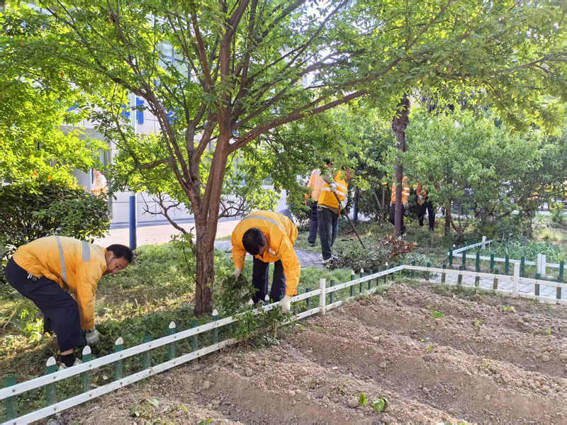 在亳州融合點(diǎn)花園,車間管理人員及黨員或弓腰或蹲下清理雜草,修剪綠化樹雜枝。在果樹園,由青年職工組成衛(wèi)生小分隊(duì)清理白色垃圾、整治衛(wèi)生死角。其他職工按照活動(dòng)安排,擦拭門窗玻璃、清掃樓道衛(wèi)生。