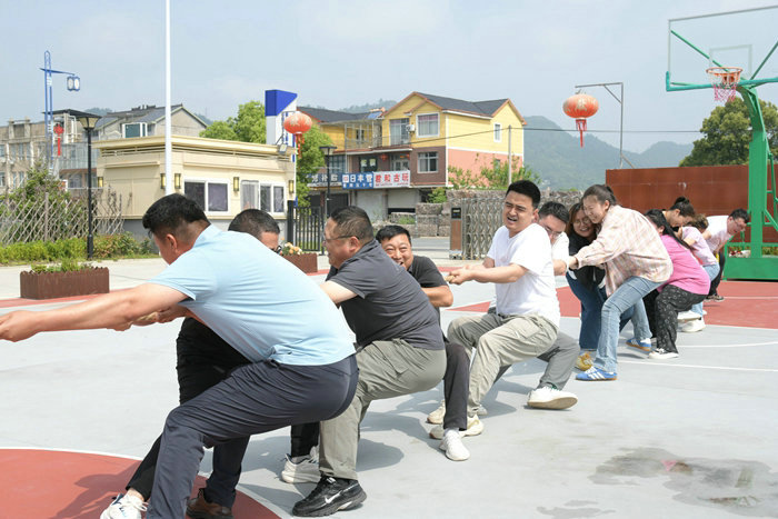 緊接著活動的重頭戲——拔河比賽在籃球場舉行。由男員工組成的紅、藍隊展開比體力、比技能的一場力拔山兮之戰(zhàn),拉拉隊員助威聲、吶喊聲、歡笑聲一浪高過一浪。經(jīng)過3個回合的較量,最終紅隊奪冠,贏得開心,藍隊屈居第二,輸?shù)梅狻?/span>