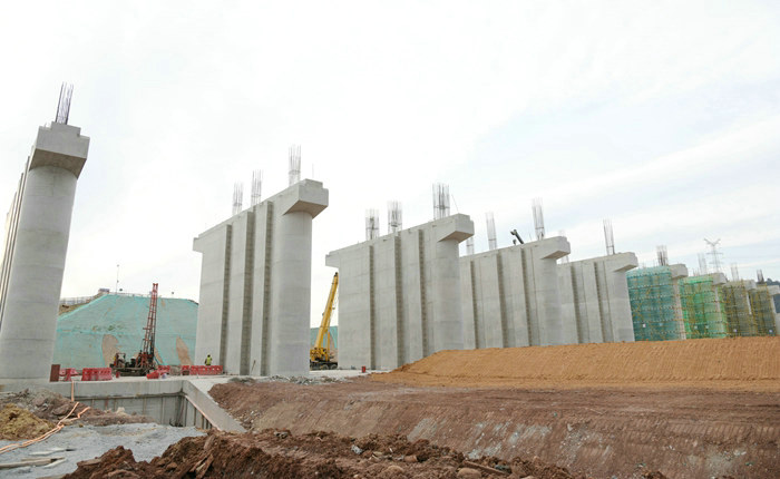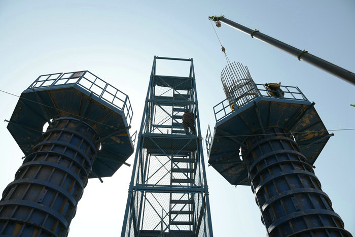 完工的9個泄洪閘墩想豐碑一樣聳立 呂畫眉攝