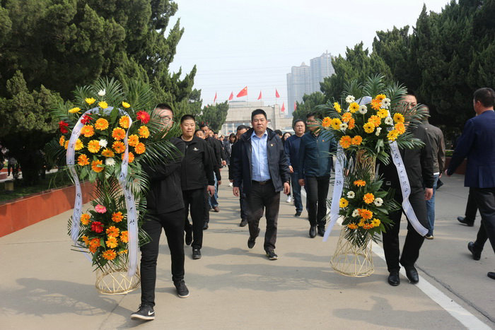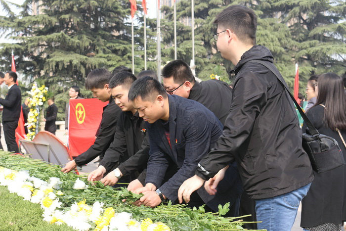 圖為員工向革命烈士敬獻(xiàn)鮮花