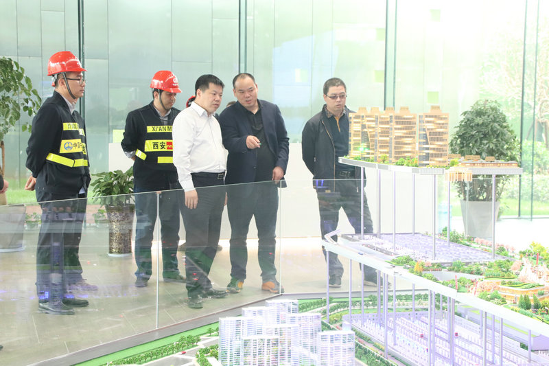 在西安地鐵五號(hào)線阿房宮車(chē)輛段項(xiàng)目,郗宜君在上蓋物業(yè)開(kāi)發(fā)展廳觀看沙盤(pán)模型,了解了阿房宮車(chē)輛段后期物業(yè)開(kāi)發(fā)規(guī)劃。隨后到施工現(xiàn)場(chǎng)查看了正在施工的綜合樓、檢修庫(kù),屈新升對(duì)目前施工的整體情況做了介紹并詳細(xì)匯報(bào)了運(yùn)用庫(kù)上蓋開(kāi)發(fā)的設(shè)計(jì)變更推進(jìn)和后續(xù)施工準(zhǔn)備情況。郗宜君對(duì)項(xiàng)目部施工標(biāo)準(zhǔn)化建設(shè)、安全、質(zhì)量、進(jìn)度給予了肯定并強(qiáng)調(diào)在運(yùn)用庫(kù)上蓋施工中要做到三點(diǎn),一是做好前期施工策劃,二是做好搶工大干預(yù)備方案,三是和業(yè)主加強(qiáng)溝通,完善合同手續(xù),確保過(guò)程資金到位。