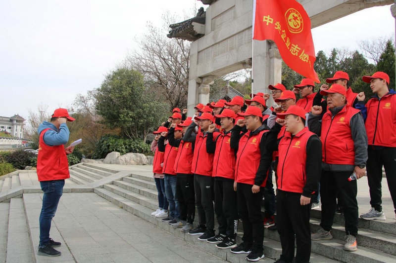 圖二、徐州地鐵1號(hào)線項(xiàng)目部龍均爵志愿服務(wù)隊(duì)進(jìn)行志愿服務(wù)宣誓