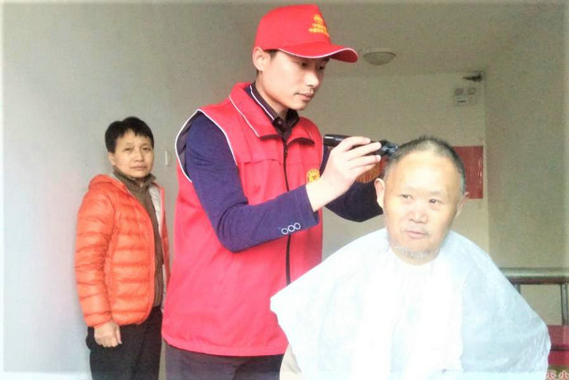 圖六、徐州地鐵2號(hào)線項(xiàng)目部志愿者走進(jìn)徐州奎山敬老院開展愛心活動(dòng),為老人理發(fā)
