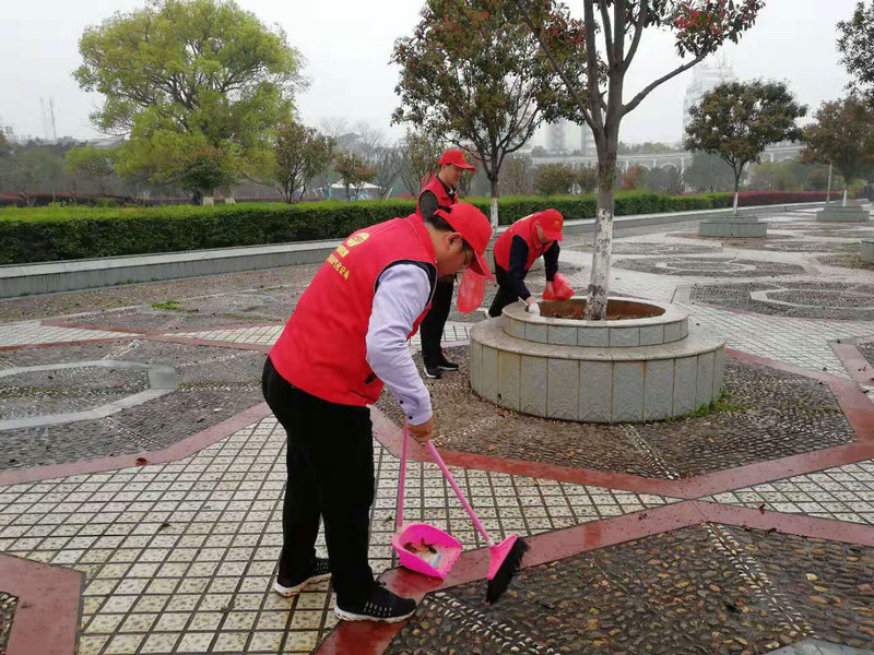 圖五、贛深鐵路遷改項(xiàng)目部志愿服務(wù)者在信豐縣中心陳毅廣場(chǎng)義務(wù)打掃衛(wèi)生