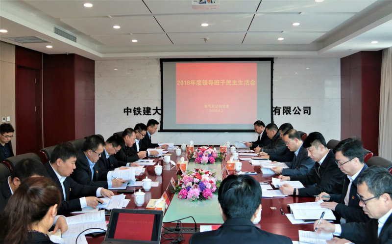 圖為中鐵建大橋局電氣化公司2018年度領(lǐng)導(dǎo)班子民主生活會(huì)現(xiàn)場