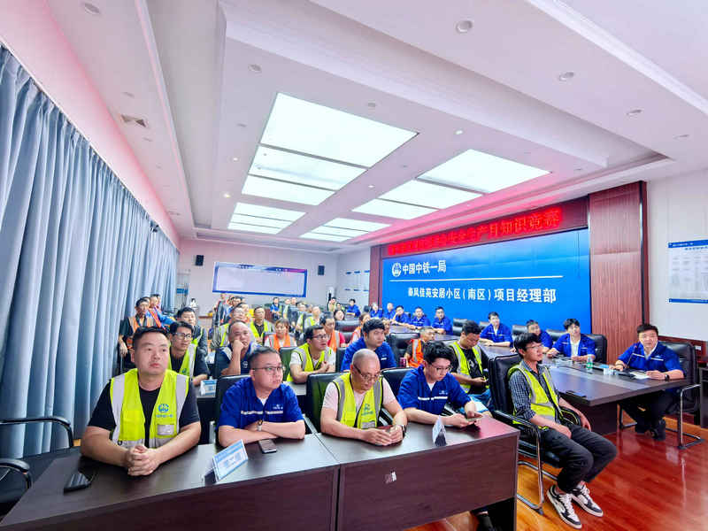 6月25日晚,中鐵一局秦風(fēng)佳苑項目部燈火通明,隨著《開路先鋒》的旋律,一場緊張激烈的安全生產(chǎn)知識競賽正式拉開序幕。本次活動緊扣“人人講安全、個個會應(yīng)急——查找身邊安全隱患”主題,旨在深化第24個全國“安全生產(chǎn)月”活動實效,通過寓教于賽的形式,推動項目全員樹牢安全發(fā)展理念,增強安全生產(chǎn)意識。