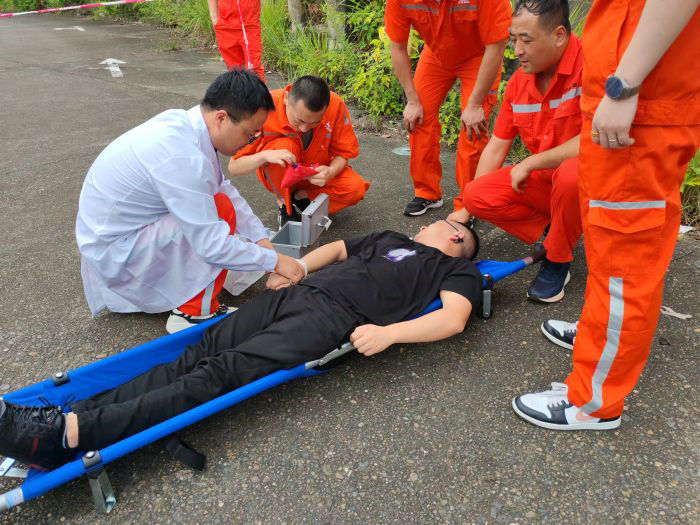 演練現(xiàn)場,應(yīng)急指揮部統(tǒng)籌調(diào)度、精準(zhǔn)決策,各應(yīng)急救援小組聞令而動。通訊組立即上報事故情況;搶險組攜帶急救箱、擔(dān)架等器材火速趕赴現(xiàn)場,在確保自身安全前提下,對墜落區(qū)域進行警戒隔離,初步評估傷員狀態(tài);后勤組準(zhǔn)備應(yīng)急車輛、物資,協(xié)助引導(dǎo)外部救援力量;醫(yī)療組模擬傷員搬運、心肺復(fù)蘇等,并安全轉(zhuǎn)運至指定救護車位置。整個演練過程緊張有序,各環(huán)節(jié)銜接緊密,參演人員職責(zé)清晰、行動果斷,充分展現(xiàn)了內(nèi)江項目應(yīng)急隊伍的訓(xùn)練有素和協(xié)同作戰(zhàn)能力。