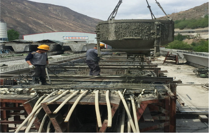 渭武十九標(biāo)項(xiàng)目位于隴南市宕昌縣境內(nèi),全線橋梁9.96km,項(xiàng)目承擔(dān)2681片后張法預(yù)應(yīng)力混凝土箱梁的預(yù)制任務(wù),其中雙線箱梁2533片,單線箱梁148片,預(yù)制箱梁數(shù)量在渭武高速公路隴南段位列第一,在甘肅高速公路建設(shè)歷史上也居于前列。