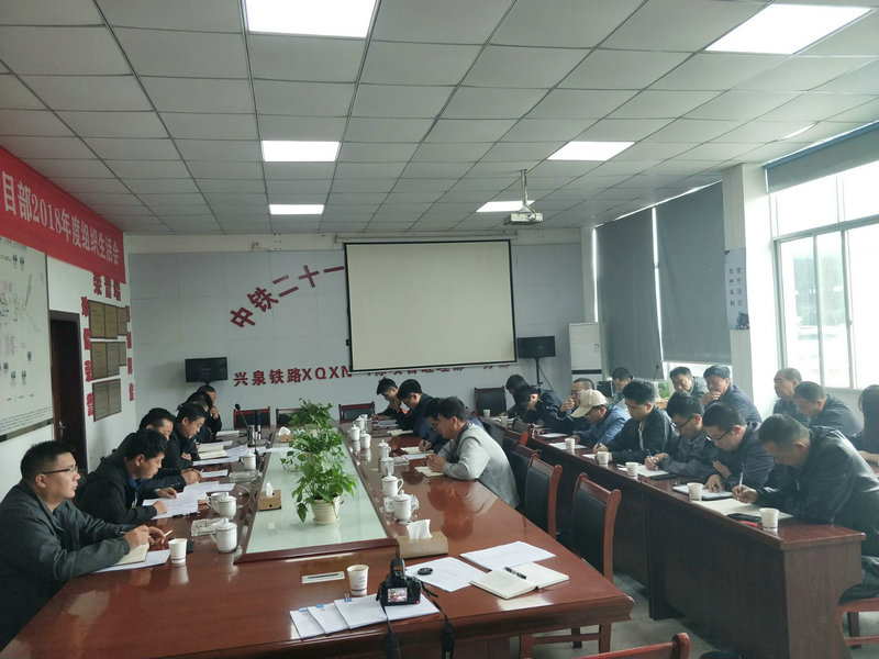4月11日下午16時(shí),中鐵二十一局四公司興泉鐵路4標(biāo)項(xiàng)目部召開2018年度基層組織生活會(huì)及民主評(píng)議黨員會(huì)議。四公司副總經(jīng)理?xiàng)罱鹦l(wèi),項(xiàng)目領(lǐng)導(dǎo)班子成員、各架子隊(duì)隊(duì)長(zhǎng)、攪拌站全體黨員28人參加了會(huì)議。