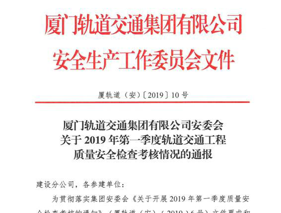 ?。◤B門(mén)訊)4月12日, 廈門(mén)軌道交通集團(tuán)有限公司通報(bào)了2019年第一季度軌道交通工程質(zhì)量安全檢查考核情況結(jié)果,中鐵一局建安公司廈門(mén)地鐵2號(hào)線安裝裝修二標(biāo)項(xiàng)目部以95.55分的成績(jī)?cè)谌€車站設(shè)備施工單位中名列第一。這是項(xiàng)目部繼獲得2018年四季度質(zhì)量安全考評(píng)第一后再次奪得季度評(píng)比第一。 中鐵一局建安公司擔(dān)負(fù)著廈門(mén)地鐵2號(hào)線馬鑾中心站、新陽(yáng)大道站、長(zhǎng)庚醫(yī)院站、翁角路站及相鄰區(qū)間的機(jī)電設(shè)備安裝及砌筑裝修施工任務(wù)。 在2019年一季度的工作中,項(xiàng)目部堅(jiān)持安全第一,質(zhì)量為先的工作思路,緊密圍繞廈門(mén)軌道集團(tuán)建設(shè)要求,認(rèn)真落實(shí)企業(yè)各項(xiàng)安全管理制度,全面履行安全質(zhì)量主體責(zé)任,不斷強(qiáng)化現(xiàn)場(chǎng)安全質(zhì)量管控。項(xiàng)目部配齊配全了安全防護(hù)設(shè)施,制定了重大危險(xiǎn)源清單和應(yīng)急預(yù)案,定期開(kāi)展安全質(zhì)量大檢查,及時(shí)組織安全生產(chǎn)專項(xiàng)檢查,扎實(shí)開(kāi)展消防應(yīng)急演練,并結(jié)合工序轉(zhuǎn)換對(duì)參建人員進(jìn)行安全質(zhì)量動(dòng)態(tài)培訓(xùn),結(jié)合春節(jié)前后的安全生產(chǎn)形勢(shì)組織專項(xiàng)培訓(xùn),進(jìn)而實(shí)現(xiàn)了安全質(zhì)量管理的全過(guò)程管理,全方位覆蓋。同時(shí),項(xiàng)目部還通過(guò)運(yùn)用BIM技術(shù),實(shí)施樣板引路、優(yōu)化施工方案等方式推動(dòng)現(xiàn)場(chǎng)安全質(zhì)量管理水平提升。完善的措施,有力的執(zhí)行,使項(xiàng)目部在質(zhì)量安全管理方面走在了全線各參建單位的前列,也贏得了業(yè)主的贊譽(yù)和肯定。 此次項(xiàng)目部在業(yè)主質(zhì)量安全考核中蟬聯(lián)全線第一,體現(xiàn)了廈門(mén)軌道集團(tuán)對(duì)項(xiàng)目安全質(zhì)量管理水平的認(rèn)可,彰顯了建安公司機(jī)電設(shè)備安裝施工專業(yè)優(yōu)勢(shì),為企業(yè)在廈門(mén)進(jìn)行市場(chǎng)開(kāi)拓創(chuàng)造了積極條件。