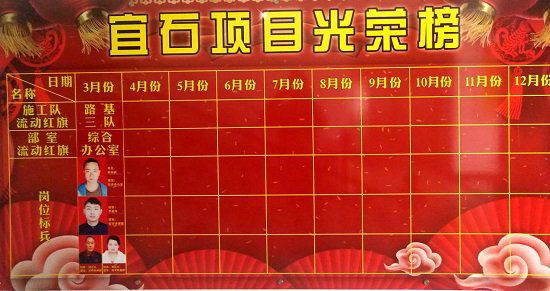 圖一、項目部設(shè)立的光榮榜