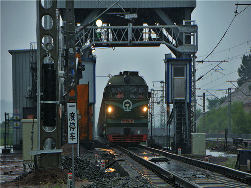 煤臺(tái)裝車塔前,調(diào)車員劉江早已渾身濕透,工服緊貼身體,雨水順著帽檐不斷往下流淌。他瞇起眼睛,努力辨識(shí)著前方信號(hào)燈微弱的顏色變化,雨水沖刷著他的臉龐,模糊了視線。