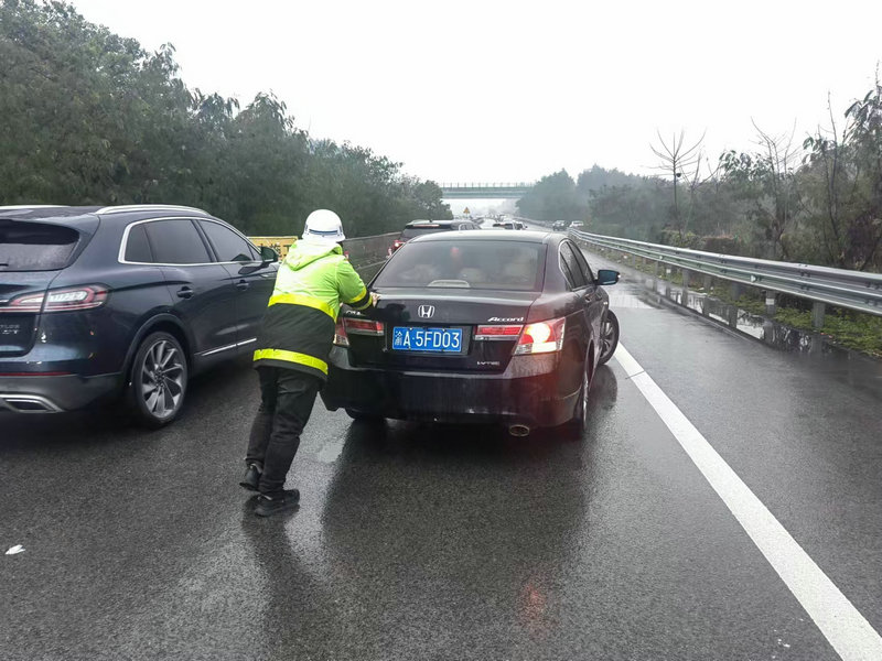 2025年1月31春節(jié)小長(zhǎng)假第四天上午,渝長(zhǎng)復(fù)線高速在車流量高于日常的基礎(chǔ)上,出城方向長(zhǎng)梁互通車流量逐漸增加,擁堵路段約1.3公里。監(jiān)控員雷懿將此情況告知路巡隊(duì)員,并密切關(guān)注該路段車流量情況,當(dāng)班巡查隊(duì)員包安泰和楊洋得知情況后,立即前往長(zhǎng)梁互通駐點(diǎn)。當(dāng)巡查到該路段附近時(shí),看見一輛黑色小車占第二車道停放。根據(jù)多年巡查工作經(jīng)驗(yàn),包安泰和楊洋認(rèn)識(shí)到該車輛屬于故障車輛,隨即立刻上前詢問后得知,該車輛確實(shí)需要救援。面對(duì)逐漸增加的車流量,該車占道會(huì)導(dǎo)致后方積壓車輛越來越多,在與車方溝通確定后,兩人將車輛推移至應(yīng)急車道上,等待救援車輛,及時(shí)化解了該路段的擁堵狀況。