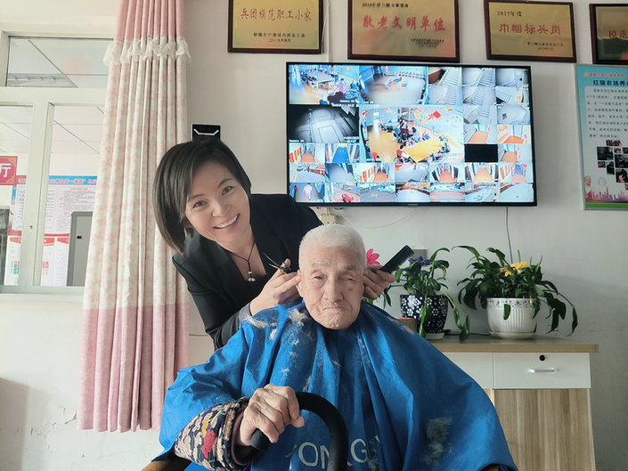 作為養(yǎng)老院的老人,衣服鞋帽都是大多是由兒女送來,非常時(shí)髦,但發(fā)型卻只能“自由發(fā)揮”了。前幾年,養(yǎng)老院沒有專業(yè)理發(fā)員,每當(dāng)老人頭發(fā)長(zhǎng)了,要么到街上理發(fā)店理發(fā),有時(shí)光排隊(duì)就需一兩個(gè)小時(shí),而且價(jià)格不菲,要么是老人之間相互“剃光頭”。