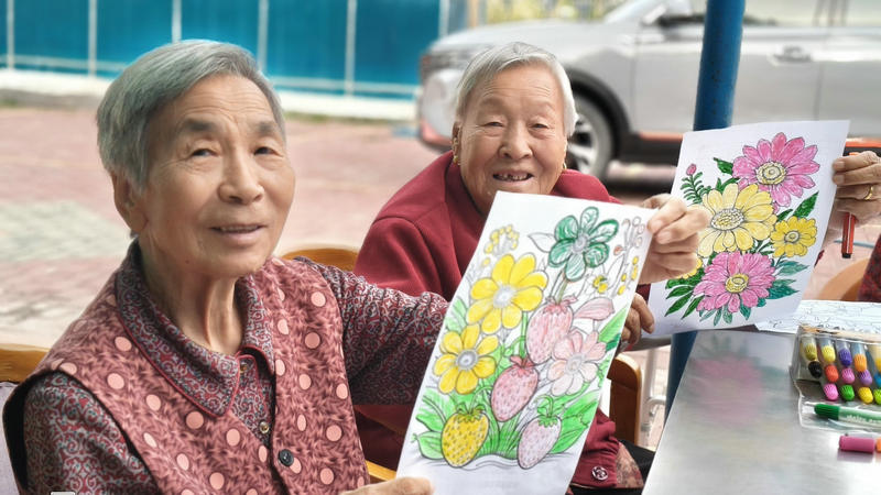 課程結束時,老人們的作品被一一展示在院子的晾衣繩上:有五彩斑斕的花朵,有灑滿金光的田野,還有帶著皺紋的笑臉被畫成了太陽。風輕輕吹過,畫紙微微晃動,像一串串跳動的色彩,映著老人們眼角的笑意,也為紅旗農(nóng)場的這個秋日,添上了最溫暖的一筆。
