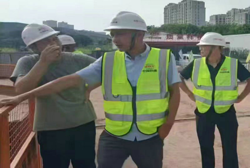 項(xiàng)目經(jīng)理王磊(右2)在現(xiàn)場(chǎng)巡查督導(dǎo)